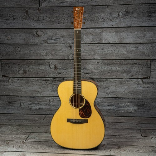 Hand selected tonewoods picked out during a visit to the Martin factory, custom one of a kind built to spec. Featuring an exceptional figured Koa body & Engelmann spruce top with dynamic projection and articulation. Beautiful golden era abalone snowflake inlay appointments. Stunning and smooth mid-range frequencies with an special top end shimmer. A player’s one of a kind acoustic with inspiring tone that’s asking to be broken in for many musical years to come.