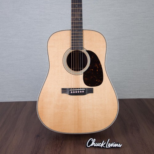 The D-18 Modern Deluxe is a new take on Martin Vintage. This guitar is packed with custom features and modern technology that you have to see, feel, and hear for yourself. The vintage appointments include a spruce VINTAGE TONE SYSTEM® (VTS) top, a dovetail neck joint, and natural protein glue construction that give it the rich, fully aged Martin tone that has inspired generations. The look is unlike anything in our production line to date with East Indian rosewood binding, stylish gold frets, gold open-gear tuners, and a unique 1930s style script logo inlaid in pearl on the headstock. Some ultra-modern features include Liquidmetal® bridge pins with red dots and a composite carbon fiber bridgeplate that boosts volume. And we’ve included a new neck shape that is slightly asymmetrical for maximum hand comfort up and down the fretboard. This guitar is anything but standard.