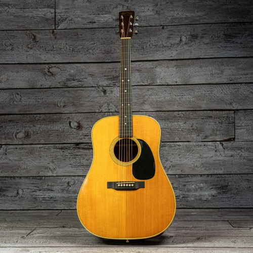 This 1972 Martin D-28 is a the classic dreadnought built with solid Sitka spruce top and Indian rosewood back and sides. Professional refret and replaced bone nut & saddle. Plays great, delivers the warm, resonant tone vintage Martins are known for.Legendary vintage ’70s Martin with appropriate wear for its age. Minor dings, surface scratches and finish checking/cracks. Includes original hardshell case.