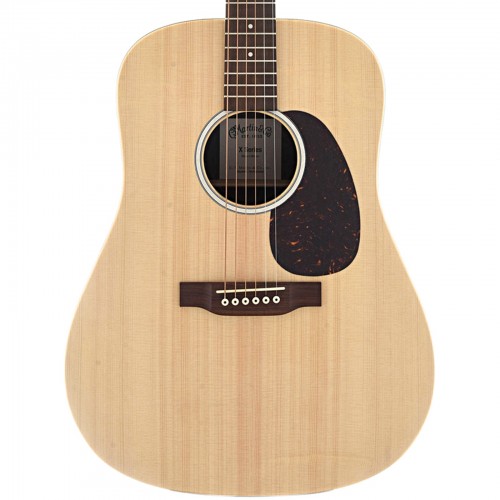 The road-ready Martin D-X2E gives you the look of koa at an incredible price. The dreadnought-size has a solid spruce top, and the back and sides are made from Martin’s HPL (High Pressure Laminate) material with a beautiful koa-look finish. Appointments include a Mother-of-Pearl pattern rosette, a tortoise plastic pickguard, and chrome enclosed gear tuners. The onboard Fishman MX pickup system has volume and tone controls in the soundhole and a 1/4″ output jack mounted near the endpin.
