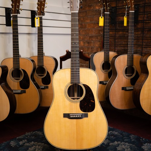 A classic 12-string dreadnought, the HD12-28 pairs a Sitka spruce top with rosewood back and sides for exuberant, rich, chiming tone. Vintage inspired features include aging toner on the top, a tortoise plastic pickguard, antique white binding, and Martin’s iconic herringbone top purfling. Great for adding texture to live or studio performances.
