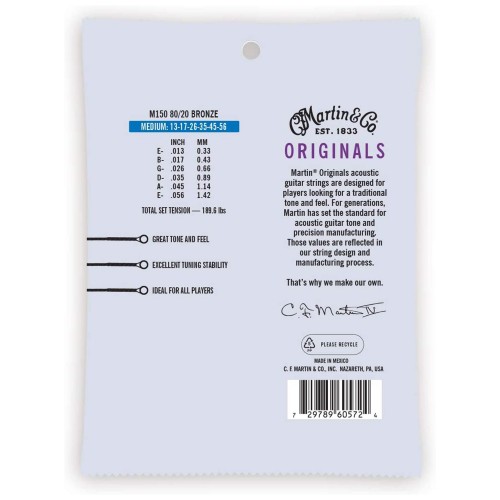 With medium gauges, including E .013, B .017, G .026, D .035, A .045, and E .056, they provide balanced tension. Designed for versatility, these strings suit a variety of playing styles, making them a favorite for professionals. Moreover, their consistent performance ensures reliable tuning stability during extended playing sessions. Upgrade your acoustic guitar experience today with Martin’s precision-crafted strings.
