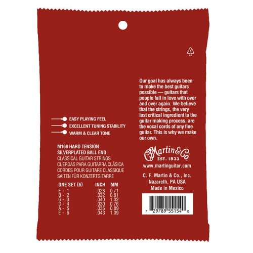 Designed for normal tension, they allow comfortable playability without sacrificing projection or clarity in each note. In addition, precise gauges—E (.028″), B (.032″), G (.040″), D (.030″), A (.035″), E (.043″)—ensure optimized tuning stability and tone. Ideal for classical guitars, Martin M260 strings are perfect for musicians who demand superior resonance, smooth feel, and long-lasting performance.