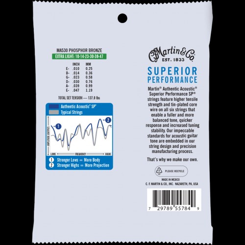 | Extra Light | .010 | .014 | .023 | .030 | .039 | .047 | 137.0 | MA530 |