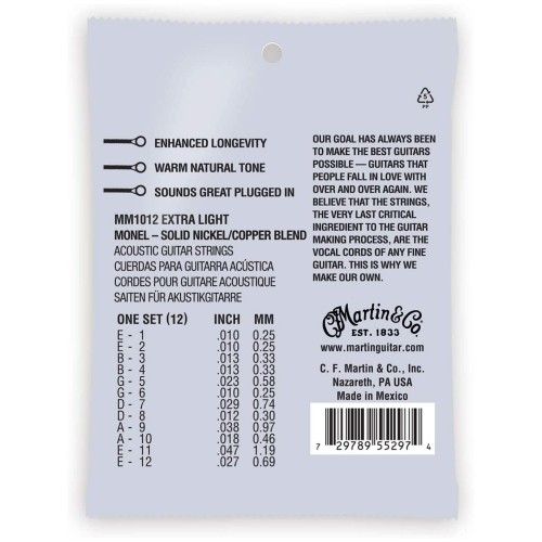 Martin MM1012 Retro Acoustic Monel 12-String Guitar Strings – Extra Light .010-.027