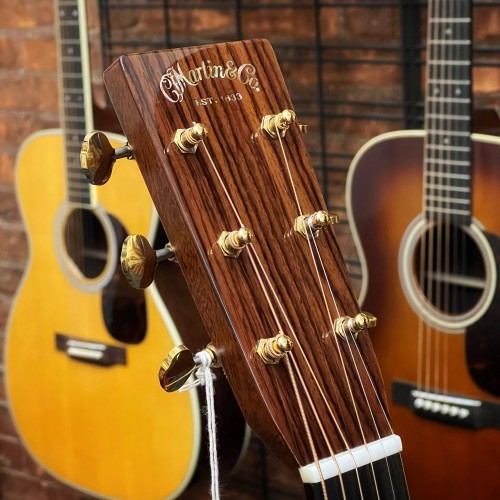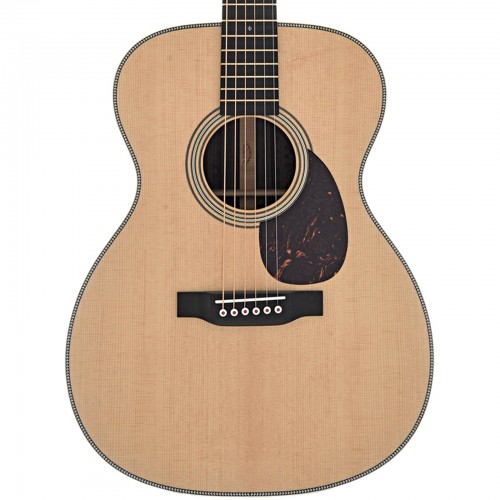 Equipped with a Fishman Aura VT pickup system, the Martin OM-28E Modern Deluxe brings a new level of versatility to the innovative Modern Deluxe platform. This model is built with a torrefied Sitka spruce top and rosewood back and sides. The pickup system has controls in the soundhole for easy access. Traditional touches include a tortoise plastic pickguard, herringbone top trim, and gold open gear tuners with butterbean buttons. Also features a maple/carbon fiber “sandwich” bridgeplate, and Liquid Metal bridgepins. The result is an ultra lightweight guitar with classic Martin tone.