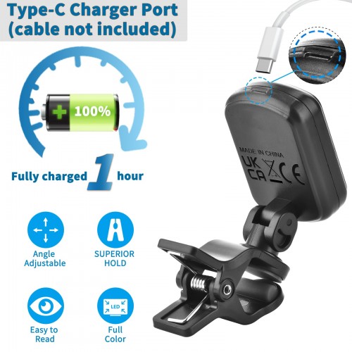 MOREYES Rechargeable Guitar Tuner Clip On with 28Pcs Guitar Picks, Guitar Tuner for Acoustic Guitar, Electric Guitar, Bass, Ukul