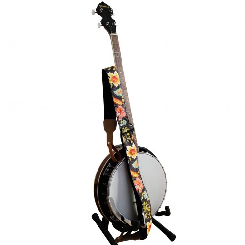 MUSIC FIRST Original Design, 2 inch width (5cm), Vintage French Country Style Floral Soft Cotton & Genuine Leather Delux Banjo Strap, With 2 pieces of MUSIC FIRST Leather Strap Locker. / Vintage Style Graceful Floral Patterned Cotton Shell Fabric / Genuine Leather Strap Ends. (Since the fabric of the strap is cut from a big piece of fabric, the pattern of each strap will be a little different, That means your strap will be unique!) / Material: Cotton (out side) + Genuine leather+ Cotton (inner side)+ABS Accessories (IMPORTANT! it will protect your Banjo not been scratched) / Width: 2 inch (5cm); Length: 62.2inch ~ 33.6inch (158cm~93cm) adjustable; Thickness: 0.15inch (0.38cm) / Two pieces of Genuine Leather MUSIC FIRST Strap Locker (Worth $7.99/piece) included. (Notice: the Banjo in the photos is not included, Thanks! )