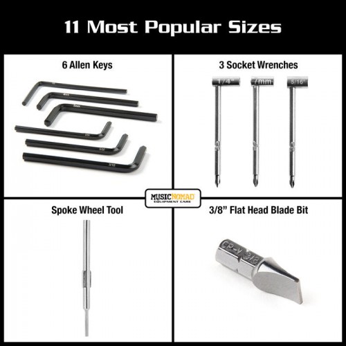- 3 Socket Wrench sizes: 1/4-inch, 5/16-inch, 7mm and each includes a PH#1 magnetized screwdriver for truss rod covers