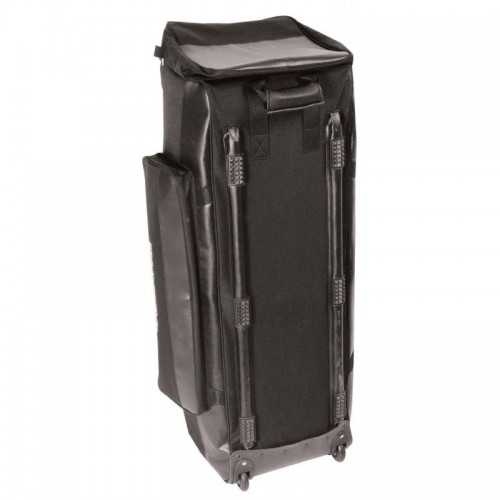 Our rugged DHB6500 Drum Hardware Bag provides exceptional protection and portability for up to eight pieces of drum hardware. Its weather-resistant exterior and padded interior protect gear from moisture and impact damage. Two built-in wheels and a reinforced end handle deliver handcart-style ease of transportation while two top handles facilitate ergonomic lifting and carrying. The extra-wide opening of the main compartment with parallel zippers enables efficient packing and unpacking. Additional convenient features include an accessories pocket for keeping essential items handy, a compartment that fits a drum throne seat cushion, and a removable interior compartment divider.