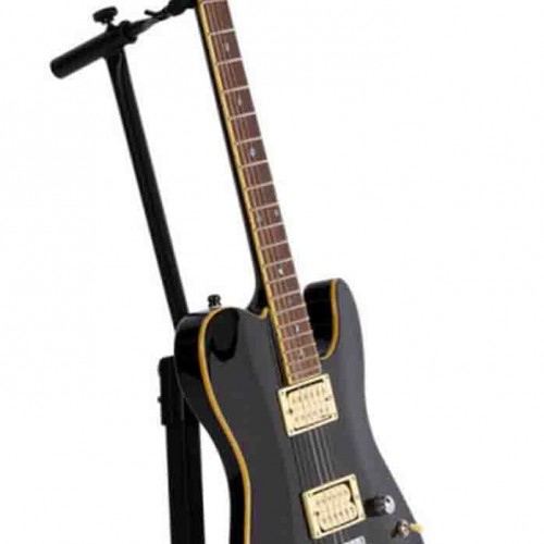 On Stage GS7465 Pro Flip It A-Frame Guitar Stand is easily the safest guitar stand on the market today! Features include the convenience of an A-Frame with the safety of our patented Flip-It! top yoke. The GS7465B features heavy-duty square tubing, velveteen rubber and a unit-construction design which means that there are no parts to lose. This stand is built with the ability of holding both acoustic and electric guitars. Upper yoke stores between the legs for travel or storage.