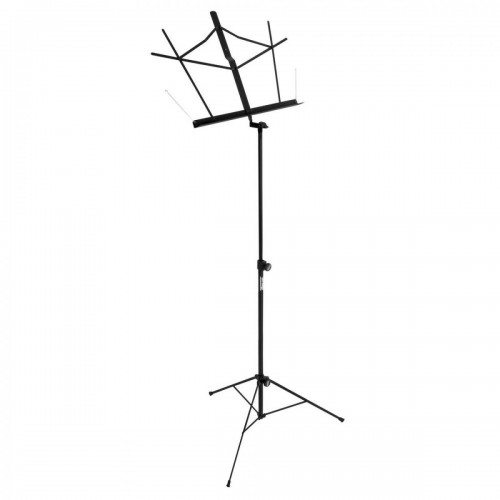 Our SM7211B Music Stand with Tripod Base holds pieces ranging from single sheets to heavy music score books. Its adjustable height and tilt angle enable ergonomic viewing from a sitting or standing position. The tripod base and nonslip feet deliver exceptional balance and stability. The legs fold flat for convenient storage and travel.
