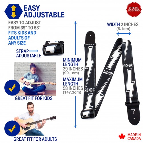 Perri’s Leathers Ltd.- Guitar Strap- Polyester- Official Licensing- ACDC- Adjustable- For Electric/Bass/Acoustic Guitars (ACDC B