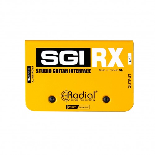 The Radial Engineering SGI-RX is a receiver unit designed to convert balanced signals back to unbalanced and deliver them to a guitar amplifier or other unbalanced gear. It ensures the integrity of the signal while maintaining noise-free performance. The SGI-RX is equipped with a Jensen transformer for superior isolation and a flat frequency response.