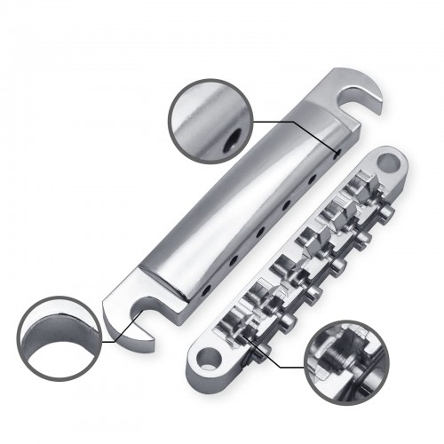 SAPHUE A Set of String Saddle Tune-O-Matic Bridge and Tailpiece with Studs for GB LP Style Electric Guitar (Chrome)