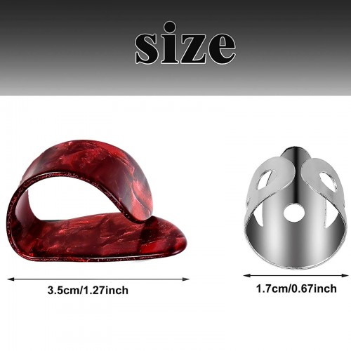 Feartures: Steel guitar finger picks set: You will receive 4 pieces middle finger picks and 2 thumbs picks, adjustable to fit your fingers by bending the metal collar, durable and not easy to be deformed, which can accompany you for a long time. Suitable for most instruments: These guitar thumb picks can be applied in playing electric guitar, acoustic guitar, classic guitar, bass, banjo, ukulele and so on; The length of the thumb picks is appropriate and it fits your finger well, it may cause sore feelings at first, but please try to do more practice and you will gradually get better. Specifications: Material: stainless steel, ABS Color: as shown Size: as the picture shown Quantity: 6 pieces Package includes: 4 x Middle finger picks 2 x Thumb picks Warm notes: Please allow slight deviation due to manual measurement. Please allow slight color difference due to different monitor.