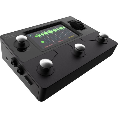 The Aeros Loop Studio is the ultimate looper pedal for guitarists, bassists, vocalists and more. Write, record, and perform with studio quality, 24-bit sound. The Aeros comes equipped with a touchscreen display and color-coded waveforms to keep you on track while you play. Run 6 parallel and sequential tracks for up to 36 unique loops per song, and experiment with unlimited overdubs. The Aeros goes beyond other loopers with a built-in hand’s free mixing mode. Change individual track volumes live, or manipulate the master volume using the ergonomic scroll wheel.