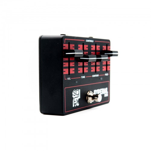 True to the original SGFX Imperial, the MKII retains our high impedance JFET preamp, giving the low noise floor detail and definition you would expect from any SolidGoldFx pedal. Bass, guitar or synth, stick it anywhere in your effects chain and feel free to ride your volume knob for clean-up – the Imperial’s preamp will respond. While the tone stack is carried over from the original design, a new Contour slider replaces the mids switch, which changes the frequency of the high-pass filter in the tone stack. This allows you to boost or scoop your mids, with every shade in between.