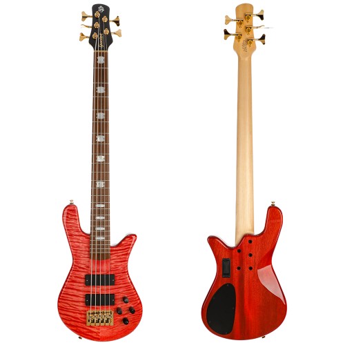 Play Spector USA Quality – The Spector USA Custom NS-5H2 Bolt-On 5 String Bass Guitar – Quilt Maple Over Mahogany Body & Pau Ferro Fretboard – Faded Red Stain Gloss