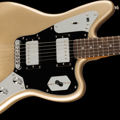 The Squier® Contemporary Jaguar® HH ST brings modern features and bold aesthetics to an iconic Fender platform to satisfy today’s most discerning and daring players. At the heart of this guitar is a pair of Squier SQR™ Atomic™ humbucking pickups with coil-split and series/parallel switching on the upper control plate for a wide range of genre-defying sonic settings. The roasted maple neck was chosen for its optimal tone and stability, and a sculpted heel design allows for improved access all the way to the 22nd fret. High-performance components round out the feature list and include a fully adjustable bridge with stop tailpiece (ST) for rock-solid string feel, and a set of sealed-gear tuning machines with split shafts for smooth tuning action and easy restringing. Eye-catching styling cues include lustrous chrome hardware and a sleek painted headstock with chrome logos for a premium look.