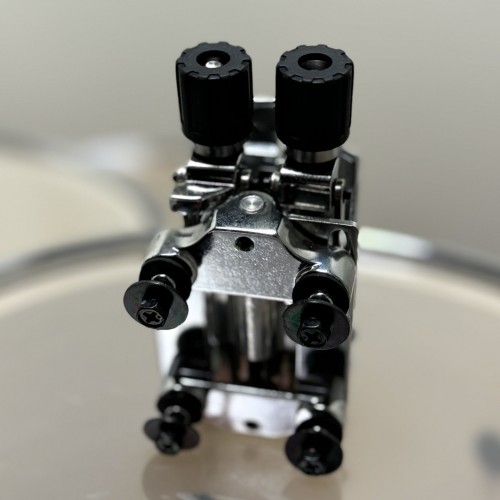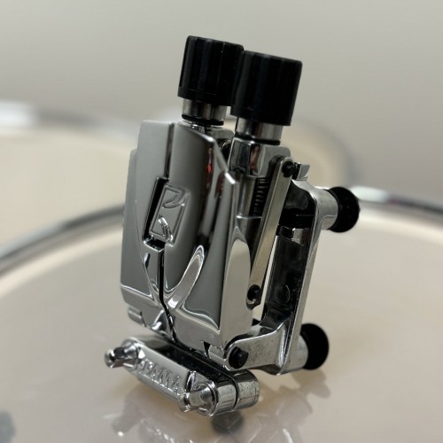 It is believed that this kit was made out of 3 Silverstar toms, hence the custom title. The previous owner installed a unique kick pedal bracket (as pictured) on the bottom of the converted floor tom to use as a kick drum lift.