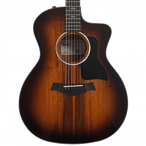 Grand Auditorium sized with cutaway, solid koa top with shaded edgeburst, laminated koa back & sides, sapele neck with ebony fingerboard, black binding, single-ring faux pearl rosette with interlocking “fishbone” pattern, black pickguard, Italian acrylic small diamond fretboard inlays, full-gloss body finish, polished bronze tuners, 1-11/16″ nut width, 25-1/2″ scale length, Expression System 2 pickup, hardshell case included.