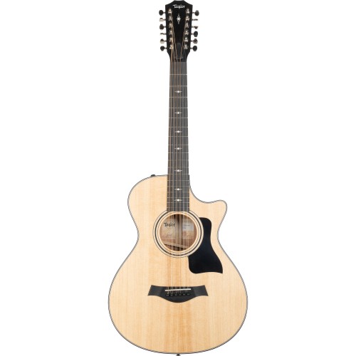 The Taylor 352ce offers an ideal blend of playing comfort and signature octave-rich 12-string sound. Solid sapele back and sides pair with a Sitka spruce top for a response with a wide dynamic range and strong presence in the mids, while the V-Class interior bracing adds more volume, longer sustain and smoother intonation all the way down the neck. The compact Grand Concert body makes for a truly inviting experience, with a smaller frame that still produces plenty of power without having to dig in too much. Built-in ES2 electronics make the 352ce a great choice for both recording and live play, and its striking firestripe pickguard adds a touch of eye-catching style to the workmanlike aesthetic. It ships with a deluxe hardshell case.