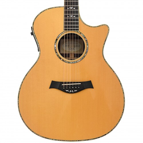 Acoustic-electric, double bound grand auditorium body, soft cutaway, spruce top, abalone rosette and top trim, rosewood back and sides, mahogany neck, bound ebony fretboard, EC