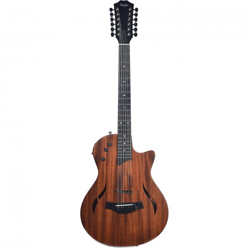 The deep color and rich grain of a mahogany top give the T5z-12 Classic a vintage, earthy character. Electric-friendly features include a compact body, a 12-inch fretboard radius, and jumbo frets, which add up to a fast, fluid playing experience. Like its six-string sibling, the 12-string incorporates a three-pickup configuration with an acoustic body sensor, a concealed neck humbucker, and a visible bridge humbucker, plus five-way switching and onboard tone controls, giving players an incredibly versatile electric/acoustic 12-string. Appointments include Small Diamond inlays and nickel hardware, an unbound body, and satin classic mahogany finish. The guitar ships in a T5z gig bag.