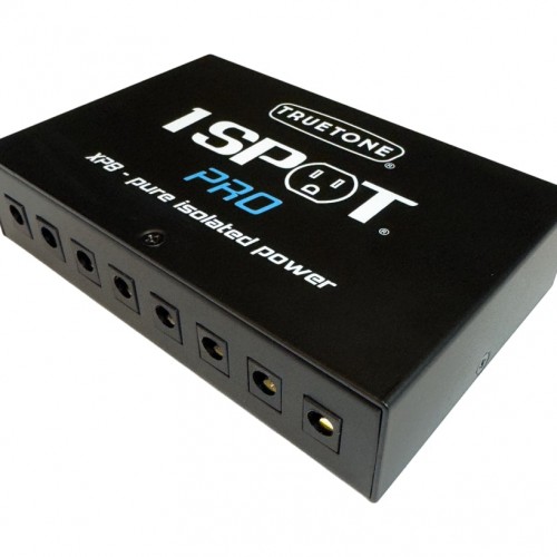 Prior to the 1 SPOT, musicians either used one linear power supply (a.k.a. wall wart) per pedal, or used batteries. Both solutions for powering pedals were very inefficient with energy, with batteries also contributing greatly to the toxic waste stream. In 2000, we pioneered the use of switching power supply technology to alleviate this condition in an economically-, energy- and environmentally-conservative way. The 1 SPOT power supply was designed to replace many such external power supplies and/or batteries simultaneously. It provided plenty of power with a very low noise level to successfully meet the needs of musicians. By offering musicians a solution that was more cost effective and energy efficient, and moving the market away from linear transformer-based power supplies to switching power supplies, Truetone has caused the saving of thousands of watt-hours per musician per year. Utilizing a more comprehensive switching power supply solution, the 1 SPOT Pro sets a new level of efficiency for power bricks, while still meeting the needs of musicians for low noise operation, even in severe conditions where the pedals themselves may generate interfering noise.