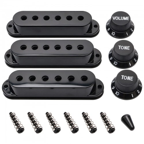 Unxuey 48mm 50mm 52mm Pickup Cover with Volume and Tone Knobs Switch Cap Kit for SQ ST Electric Guitar (Black)