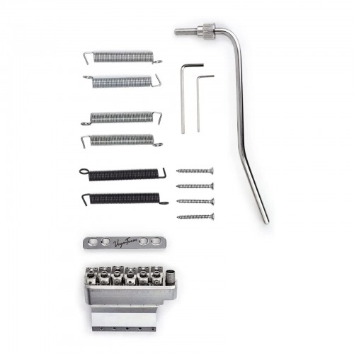 strong>VT1 ULTRA TREMstrong>The patented VT system (ES 1119430 U) is based on two basic principles: the adaptation of the bridge dimensions to the existing standard cavity in the ST models and the bridge pivoting system Adapting the dimensions aims to allow the bridge to freely enter into the cavity of the guitar body by pulling the whammy bar back (tensioning the strings) and requires a redesign of the complete assembly (saddles, plate and block) To optimize the movement of the bridge, the pivotal center of action has been changed by adding a part (fulcrum) that replaced the traditional concept of support on screws, giving more amplitude to that movement The shape of the point of support of the plate on the fulcrum has also been changed, minimizing friction, which is practically non-existent The result is a homogeneous action very pleasing to the musical performance totally free of unwanted noises (It is recommended to use low friction nuts and locking tuners) strong>SIMPLE, NO PROBLEMstrong>If you have already mounted, adjusted or simply changed strings with any of the existing tremolos on the market and you are not a handyman or aspiring luthier, then you already know it isn&rsquot such an easy task at all So we have redesigned everything so that with a simple video and a screwdriver you can mount your VT1 UltraTrem in the blink of an eye And if when you hear the word dismount you see the Antichrist, do not worry, your luthier or your trusted store will be happy: they will never have earned such easy money for doing something so simple strong>YOUR BELOVED ST, UNSPOILEDstrong>If you have looked into it, you will know that up until today, mounting your floating bridge on an ST type guitar meant that you always needed to modify, and this meant drilling new holes, and screwing into the original bridge cavity Whether your beloved Strat is a classic or an upgraded standard, A PROFANE AcT indeed For this reason, we invented the VT1 UltraTrem That means not having to drill, sand, or enlarge anything, since it fits perfectly into the original cavity strong>cOMFORTstrong>If, by what you&rsquove read so far, you&rsquore not convinced that changing to VT1 offers enough benefits Well, there&rsquos one more very important reason: the VT1 is, by its original design, the most compact tremolo on the market, therefore, it does not stick out from the body, as usually happens with other tremolos, and this means the whammy bar won&rsquot in any way hinder your interpretation strong>APPEALINgstrong>If you love the look of your guitar you will not be thrilled to have to replace the original bridge with a metal brick like the tremolos thus far available on the market But that&rsquos history The VT1 UltraTrem fits almost in the same space as the original bridge, so your guitar will look as beautiful as ever and you will love the stainless steel top coating Because although we may not confess it, we all care about our aesthetics and we all have a Rock Star soul strong>THE RIgHT PLAcE FOR THE LEFT-HANDEDstrong>VegaTrem now is the right place for lefties looking for a whole new level of stability and versatility without modifying the guitar Here is the UltraTrem VT1 LH This left-handed tremolo has the same quality and price than the standard version strong>MUSIcALstrong>All the mechanical improvements of the VT1 UltraTrem, in relation to everything previously existing, make it behave in a more musical way, it is no longer just the tone and the absence of noise, it is also that the intervals that you get when tightening the strings are harmonically compatible, so you can add to your interpretation, the typical phrasing of a pedal Steel, or super tuned glissandos strong>MADE IN EUROPEstrong>The quality of a VT1 UltraTrem bridge is born not only of a particularly reliable and robust design, but also of the exceptionally reliable manufacturing process All of its components are made of high quality stainless steel, even the block is made of galvanized steel We manufacture in Europe with the same materials, quality, process and precision control used in the manufacturing of surgical materials This is the only way to offer you an unbeatable 2 years warranty (we double the guarantee period of the best sold vibratos all over the world until now) strong>MAINTENANcEstrong>For the correct maintenance of your VT1 system, make sure to keep the trem bar receiving bushing greased as well as the fulcrum grooves on which the plate rests We recommend the use of lubricants such as lithium grease, molybdenum disulfide or similar