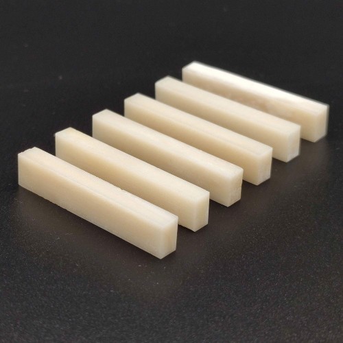In fact, the original nut and saddle on many beginner guitars are plastic parts, please dont dislike them, because this plastic part is completely enough for beginners, who usually indulge in learning skills and ignore the sound quality of the guitar itself If you have ever noticed that bone nut is usually used on some mid-to-high-end guitars, why Because the bone conducts sound better, it can reduce a lot of energy loss, your guitar will have a more durable sound Many famous guitar manufacturers or hand-made luthiers are keen on the sound of bones, so bones are widely used in their guitars If you are tired of your existing plastic parts, we suggest you try a cattle bone, it will definitely bring you a new acoustic experience A complete bone brings complete and well-balanced sound, which has an overwhelming advantage compared to industrial synthetic plastic or bone meal molds Yes, Vencetmats bone nut is cut from a complete of cattle bone wall, just this bone you need strong>We know you may be concerned about this, Should this item fit my guitar bridgestrong> Notice this size:74mmX3mmx9mm If you have a Martin guitar, congratulations, its likely to be perfect, It doesnt matter if not, You can shorten a bone, but cannot lengthen it 74mm length is enough for most other guitars, usually only need a 2mm(left and right per 1mm shortened) workload is right strong>Product Properties:strong> Material: completely cattle bone color: Ivory Length: 291(74mm) Height: 35 (9mm) Thickness: 118(3mm) R=157(400mm) strong>Package contents:strong> Vencetmat guitar Saddle x 4