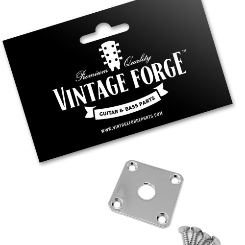 This high quality metal jack plate compatible with Gibson Les Paul style guitar comes complete with (4) mounting screws. These will also work on many Epiphone Les Paul guitars but we highly advise you measure your instrument first to be sure. This jack plate is FLAT and not curved. Features: High quality metal (Chrome Finish) 4 color matched mounting screws included Vintage Forge Factory Sealed Packaging Part #JPS40-CHRDimensions:Length: 1 3/8 in. (35mm) Width: 1 3/8 in. (35mm) Metal Thickness: 1/16 in. (1.7mm) Jack Hole: 3/8 in. (9.7mm) Screw Hole Spacing: 1 in. (25.4mm)