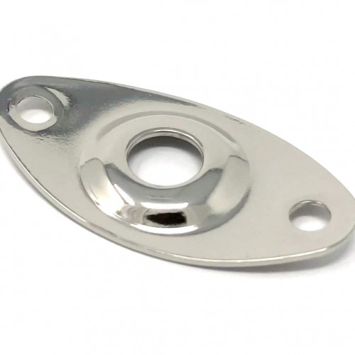 This high quality metal Oval Football Jack Plate comes complete with 2 mounting screws. The jack plate has a slight curve to match the slight curve of the guitar body.Features: High quality metal (Nickel Finish) 2 color matched mounting screws included Vintage Forge Factory Sealed Packaging Part #JPF20-NKLDimensions:Length: 1 61/64 in. (49.5mm) Width: 1 1/32 in. (26mm) Metal Thickness: 3/64 in. (1.1mm) Jack Hole: 3/8 in. (9.6mm) Mounting Hole Center to Center: 1 1/2 in. (38mm)