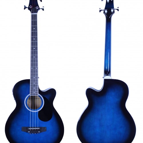 Vizcaya Full Size 4 Strings Cutaway Acoustic-Electric Bass Guitar With 4-Band Equalizer,5mm Padding Gig Bag,Strap, Picks-Blue